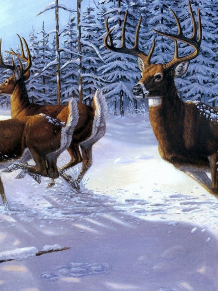 Deers in the snow HD Wallpaper - Non-retina iPad