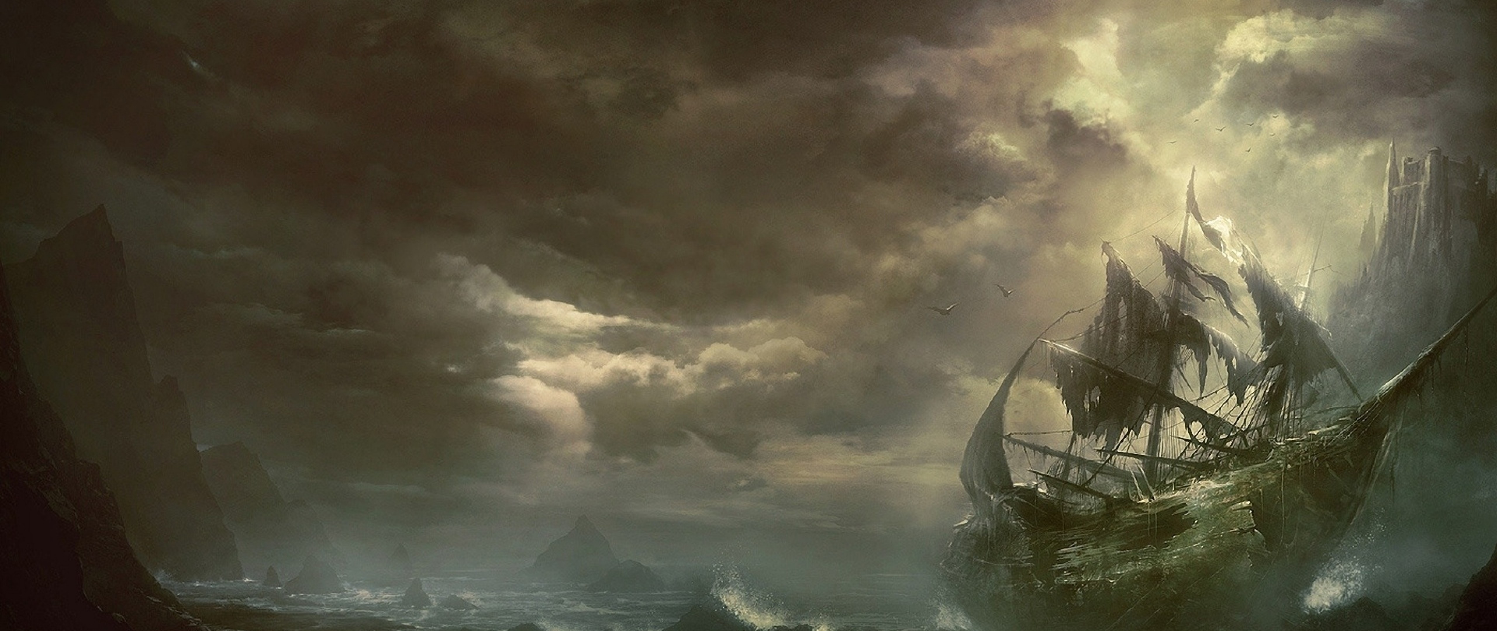 Destroyed ship over the sea HD Wallpaper - 4K Ultra HD Wide TV