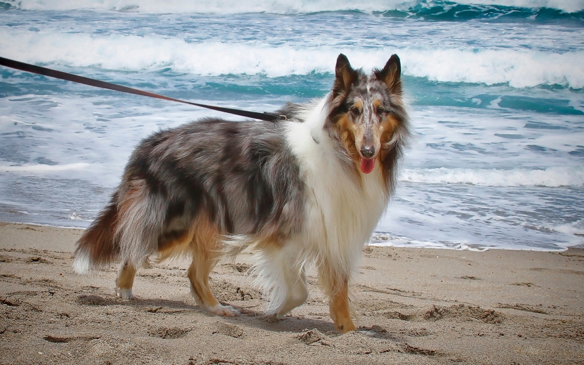 Dog walking at the beach HD Wallpaper - 1920x1200