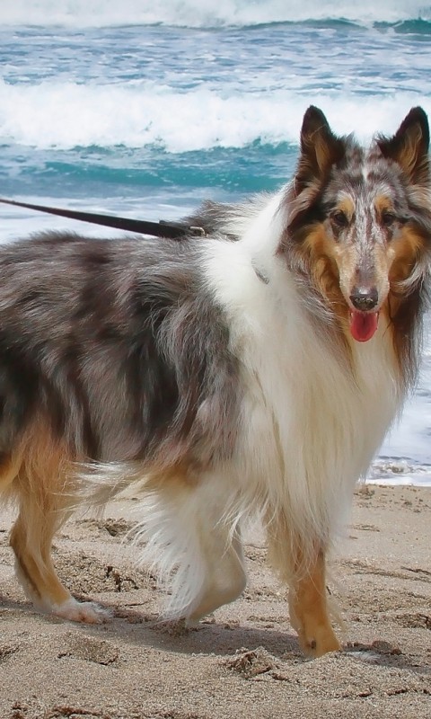 Dog walking at the beach HD Wallpaper - 480x800