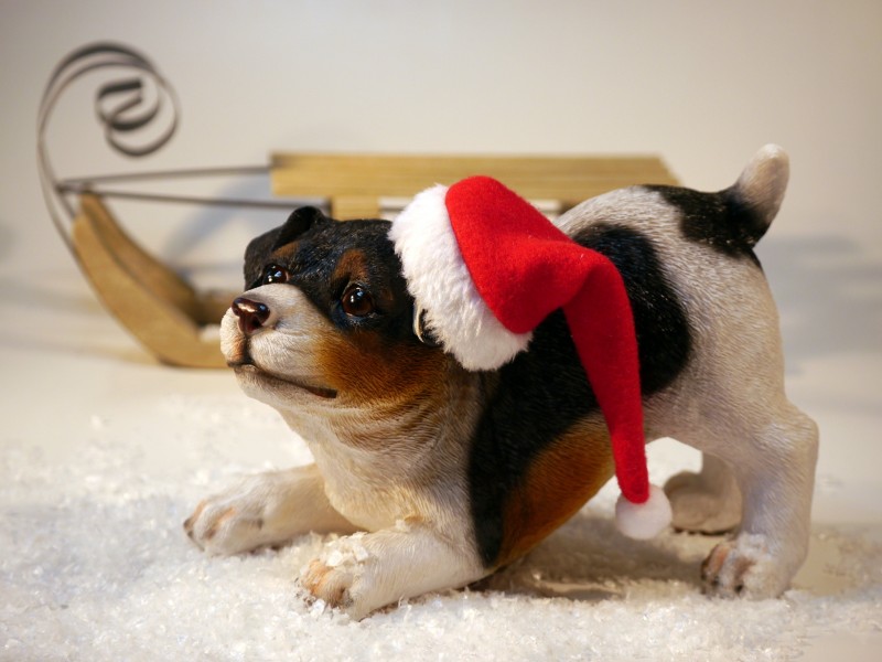 Dog Wearing Santa Hat Figurine HD Wallpaper - 800x600
