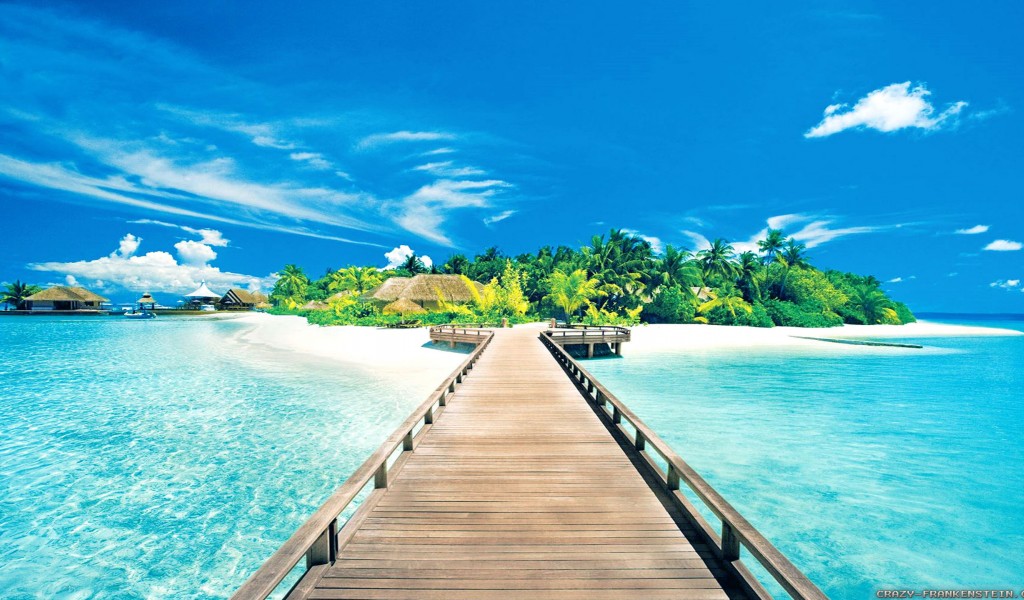 Download Free Clear Water Island Bridge wallpaper - 1024x600