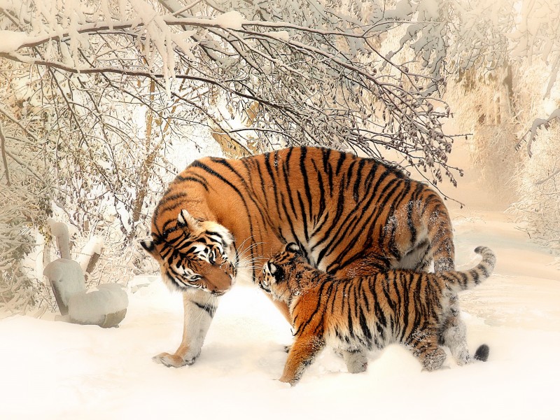 Download Free Full HD Tiger Family Wallpaper - 800x600