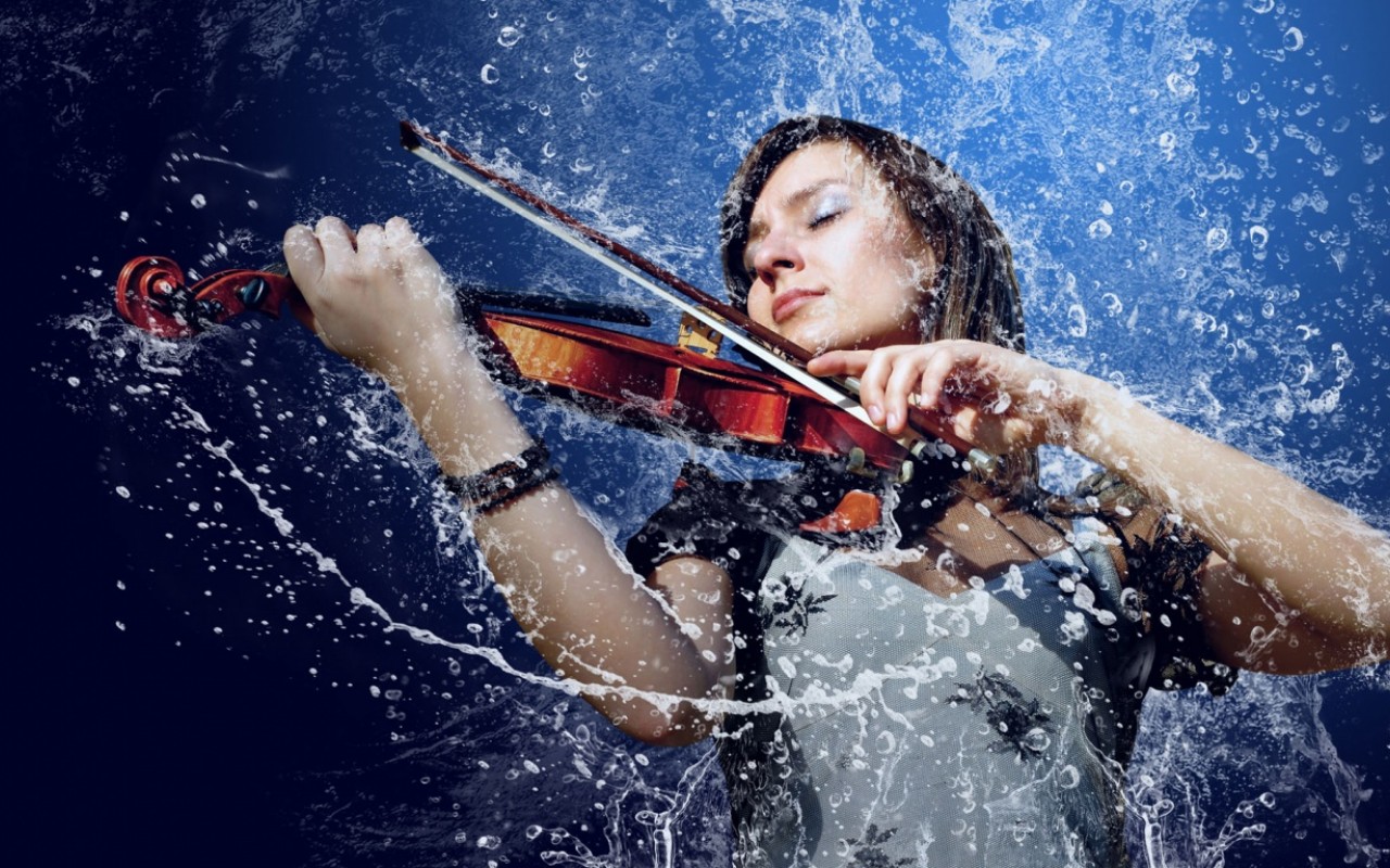 Download Girl Playing Violin In Water Hd Wallpaper for Desktop and Mobiles - 1280x800
