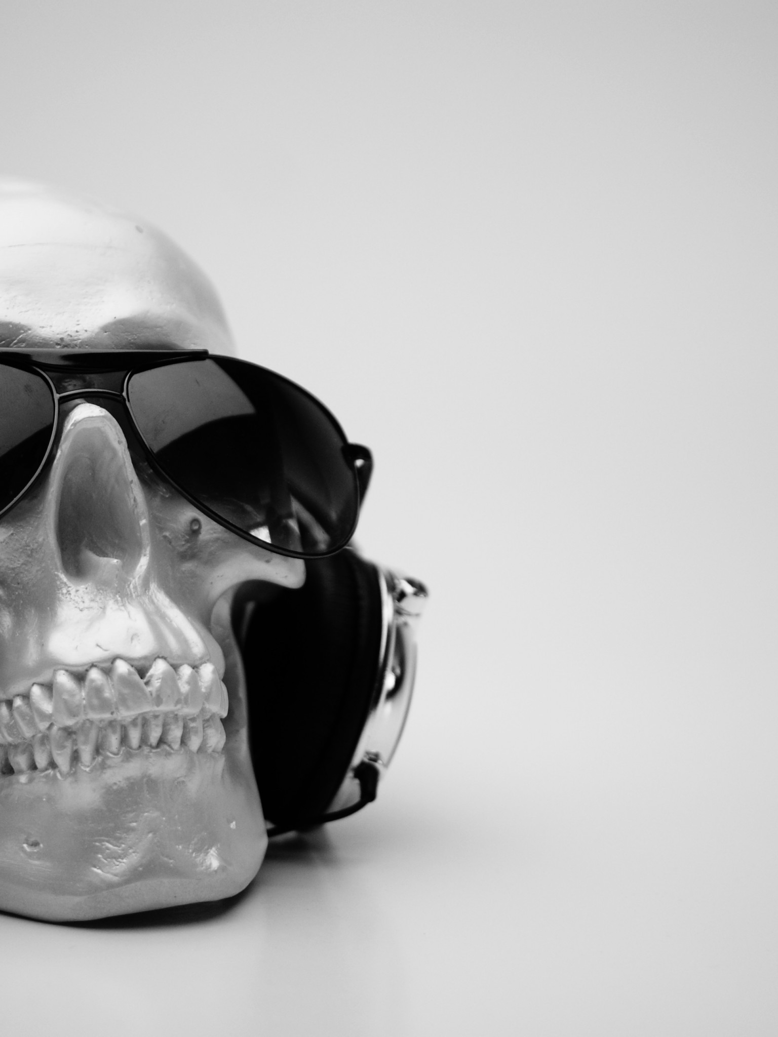 Download Skull & Headphones Black & White Hd Wallpaper for Desktop and Mobiles - Retina iPad