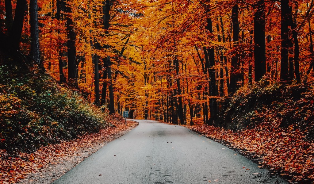 Driving at an Autumn day HD Wallpaper - 1024x600