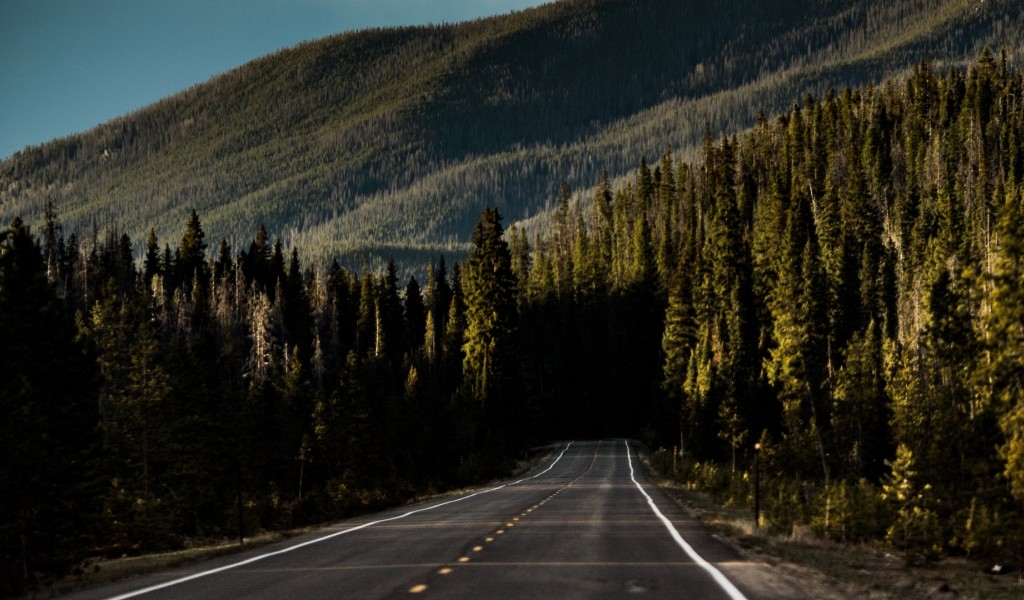 Driving through the forest HD Wallpaper - 1024x600