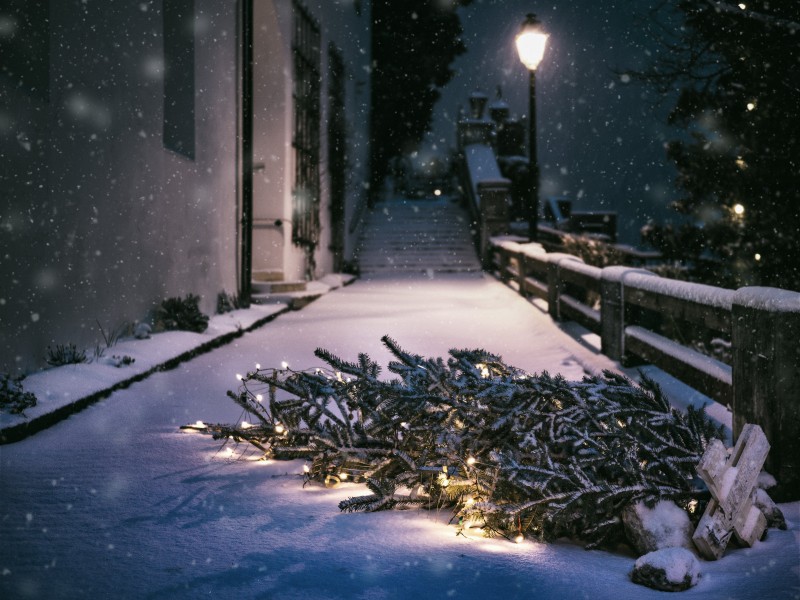 Falling Christmas Tree on Pathway HD Wallpaper - 800x600