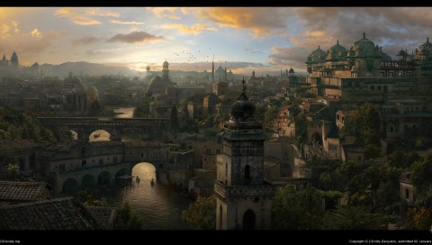 Fantasy medieval port city HD Wallpaper - 480x272 PSP