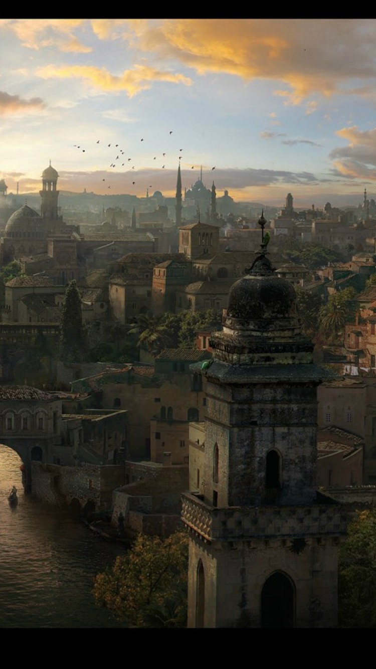 Fantasy medieval port city HD Wallpaper - iPhone 6 / 6S