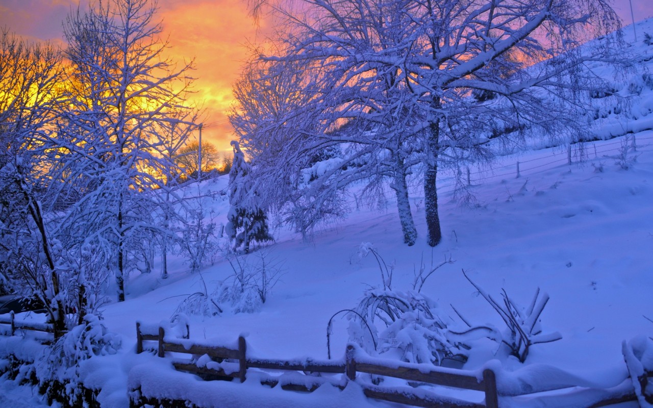 Fence covered in snow HD Wallpaper - 1280x800