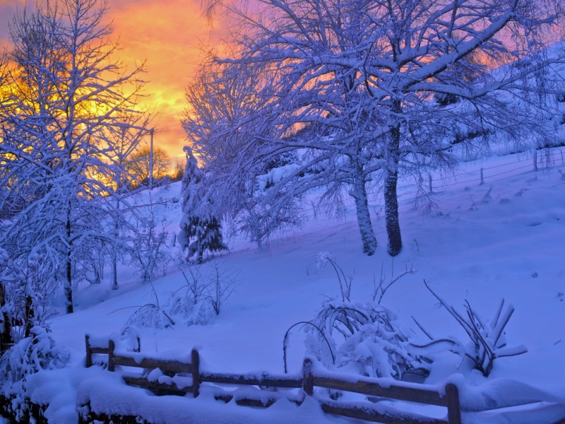 Fence covered in snow HD Wallpaper - 800x600