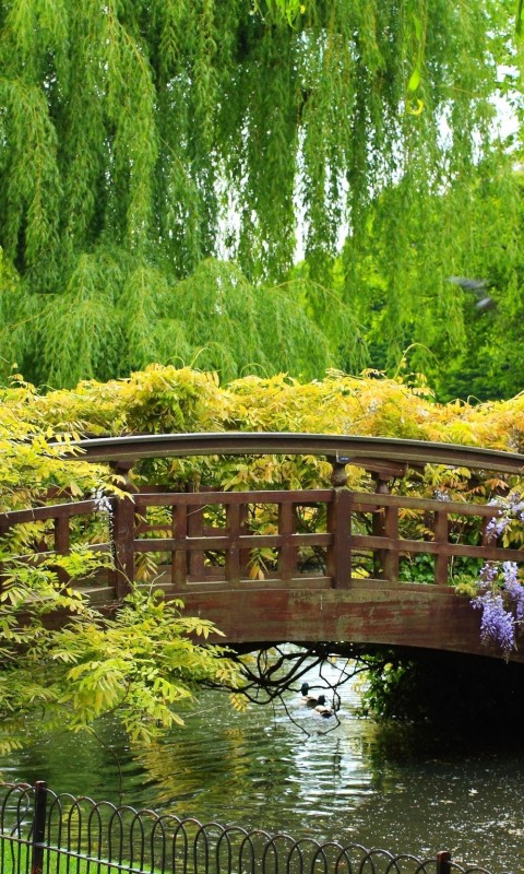 Flower Willow Park Bridge HD Wallpaper - 480x800