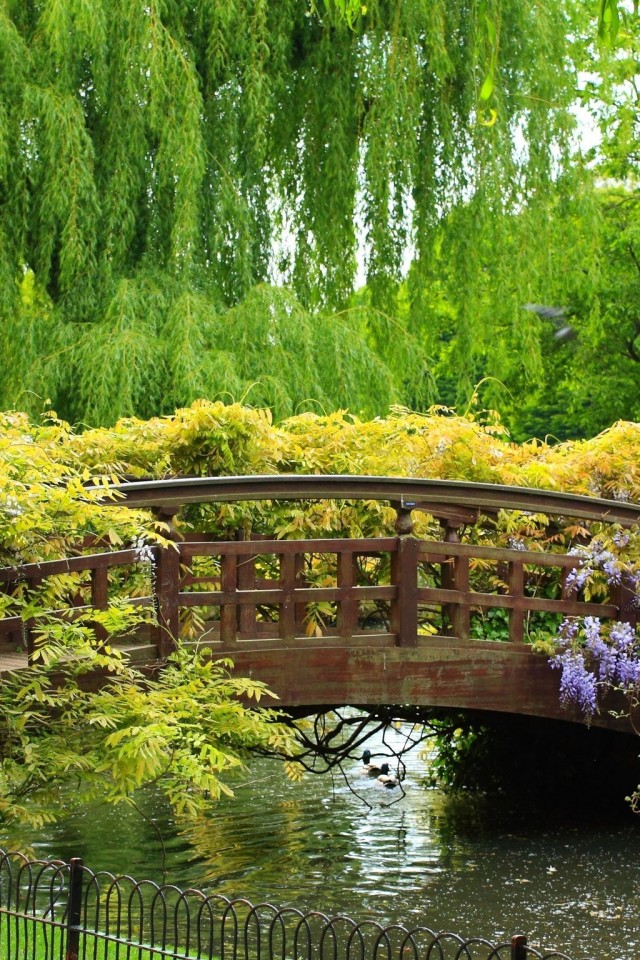 Flower Willow Park Bridge HD Wallpaper - iPhone 4 / 4S / iPod