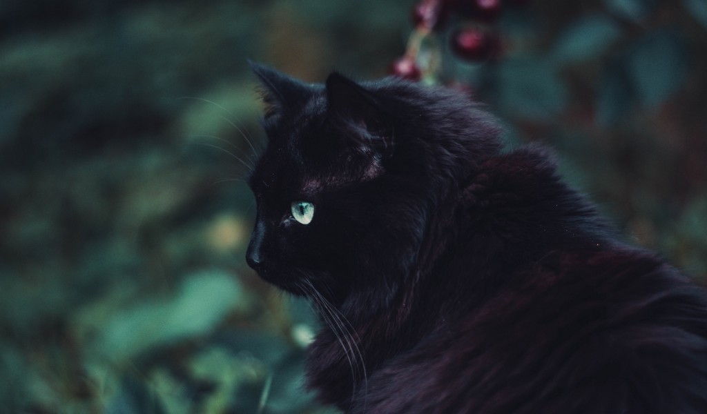 Fluffy black cat HD Wallpaper - 1024x600