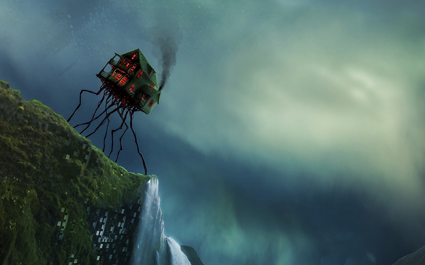 Flying house over waterfall HD Wallpaper - 1440x900