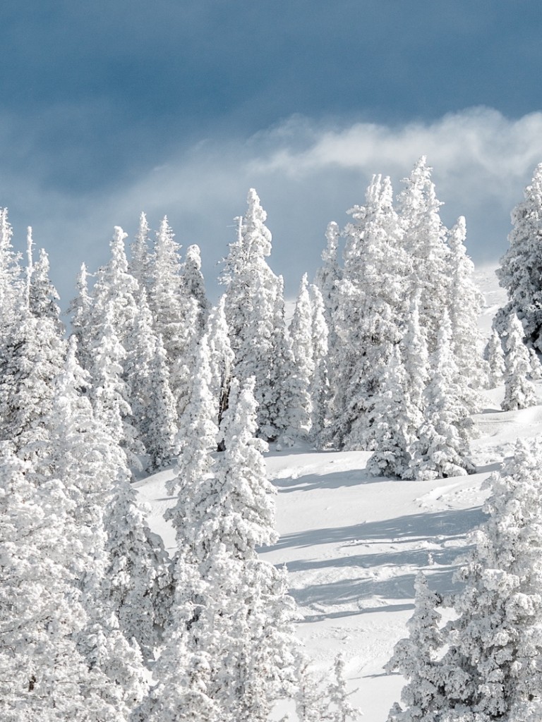 Flying over a snowy forest HD Wallpaper - Non-retina iPad