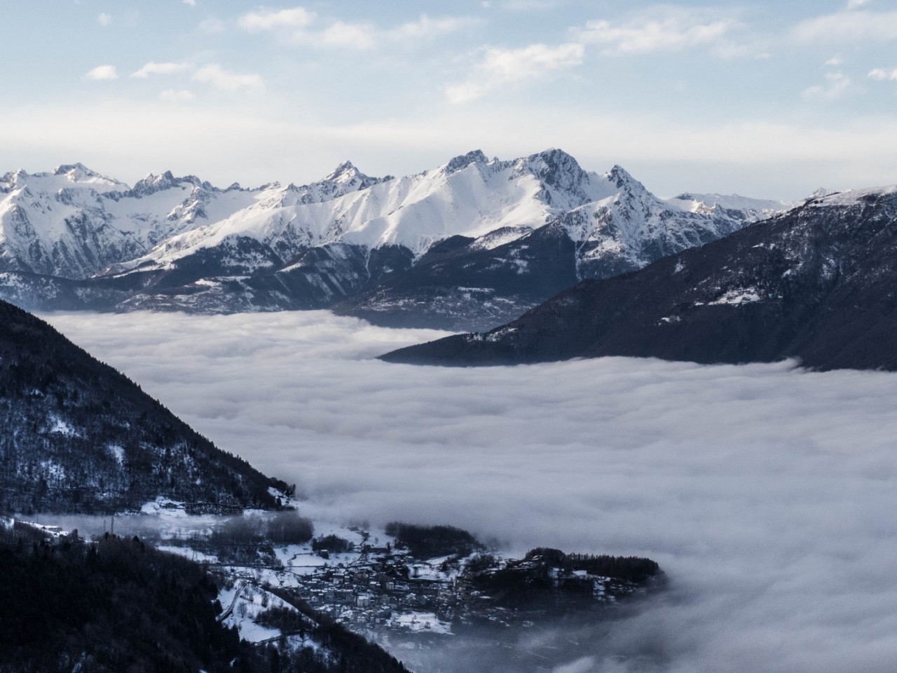 Fog covering mountains HD Wallpaper - 1280x960
