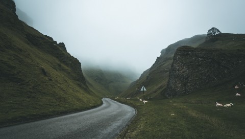 Foggy road turn HD Wallpaper - 480x272 PSP