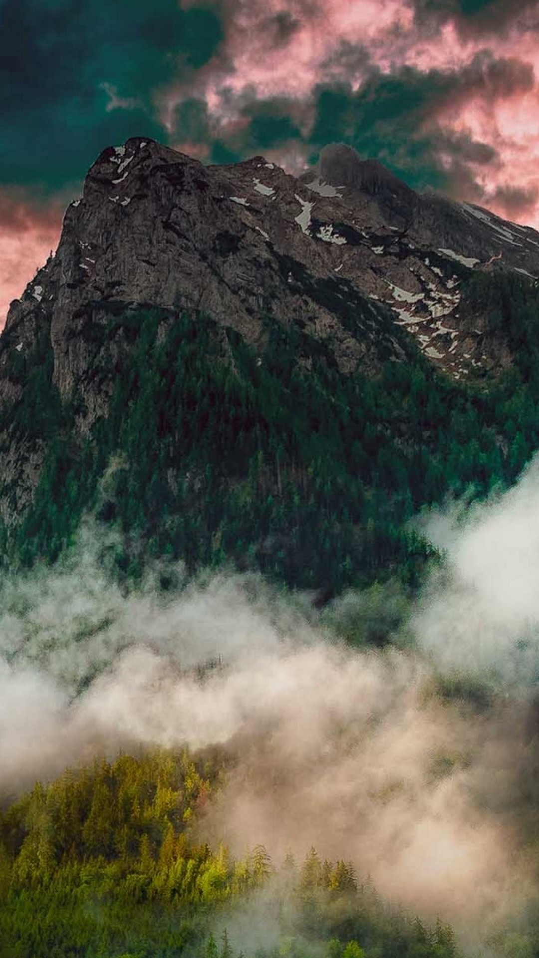 Fogy forest under the mountains HD Wallpaper - iPhone 6 / 6S Plus