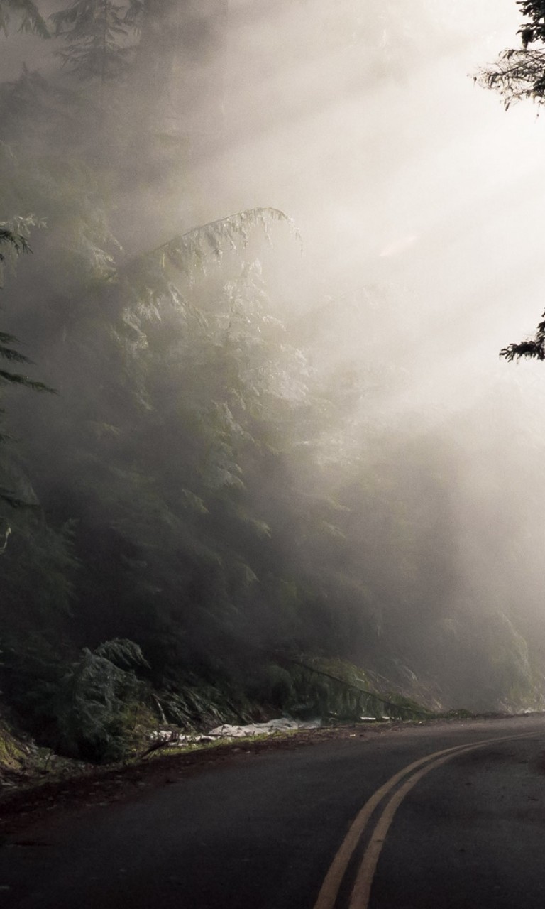 Fogy road turn HD Wallpaper - 768x1280