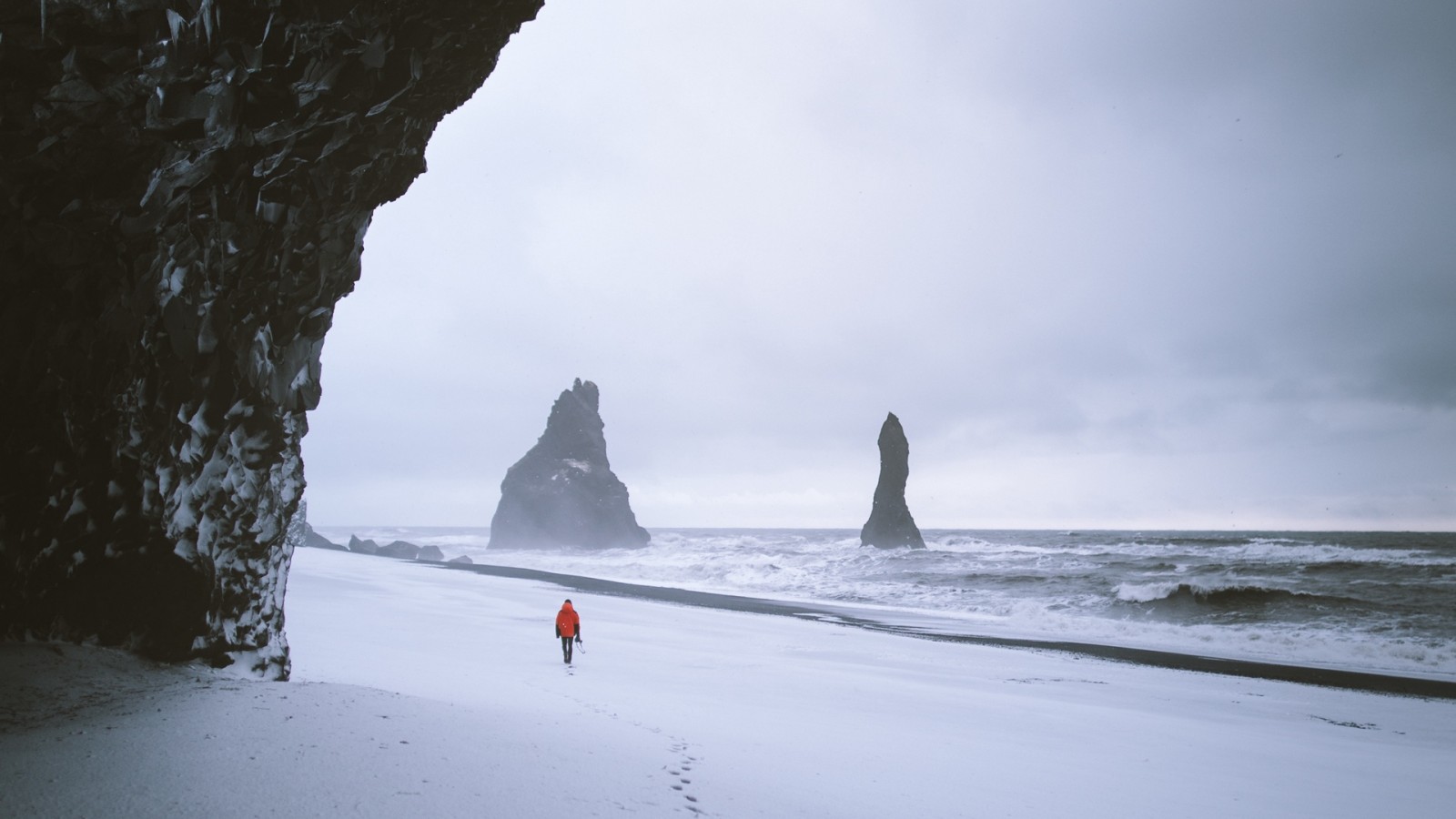 Foot traces at the snow HD Wallpaper - 1600x900