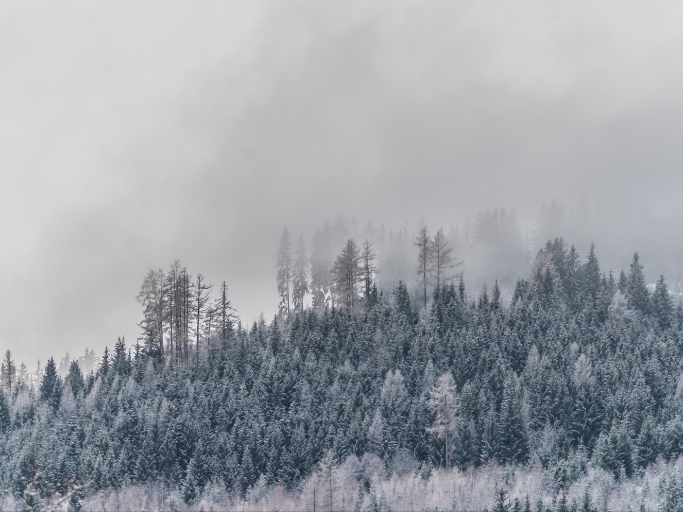 Forest at winter covered in fog HD Wallpaper - 1400x1050