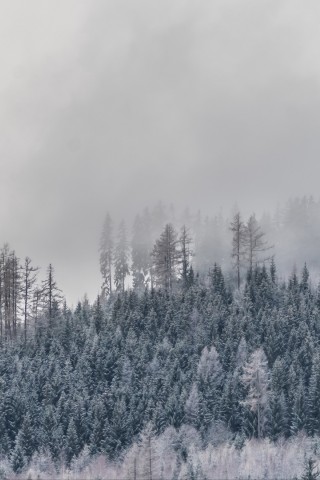 Forest at winter covered in fog HD Wallpaper - Older iPhone & iPod