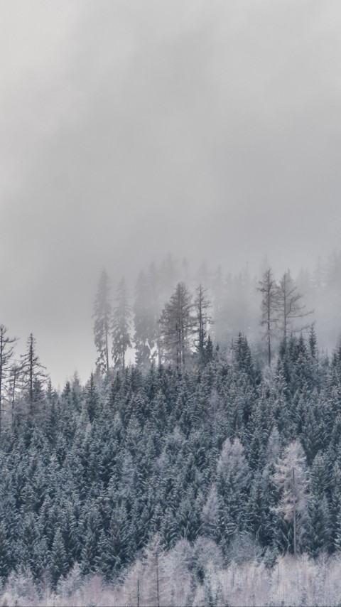 Forest at winter covered in fog HD Wallpaper - 480x854