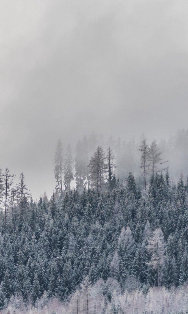 Forest at winter covered in fog HD Wallpaper - 768x1280