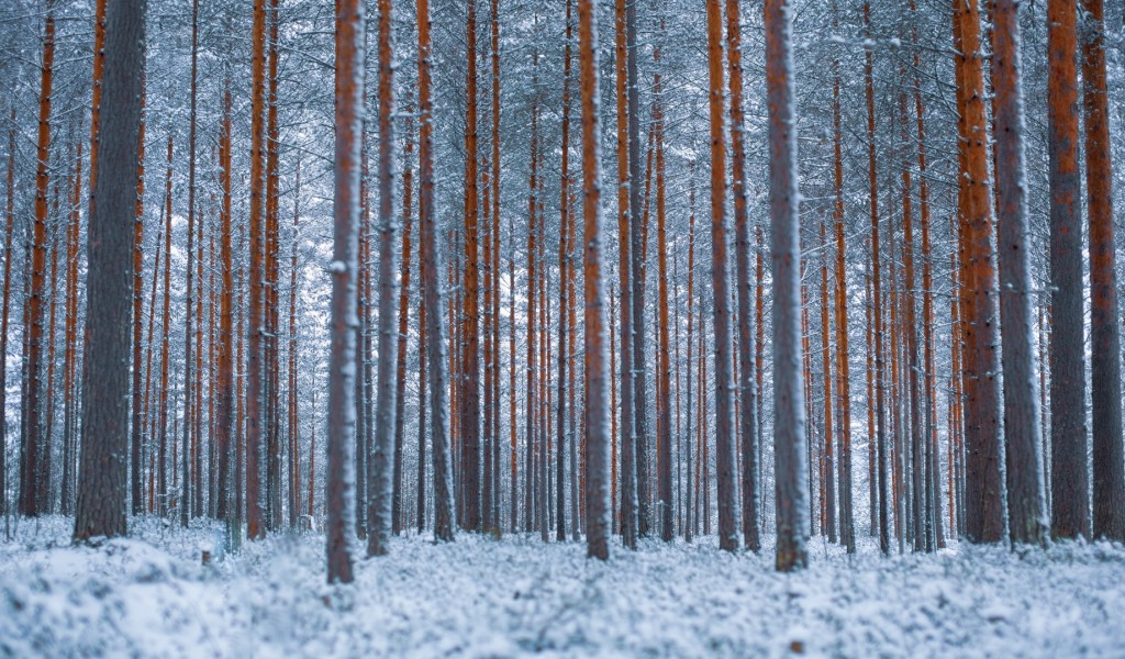 Forest covered in snow HD Wallpaper - 1024x600