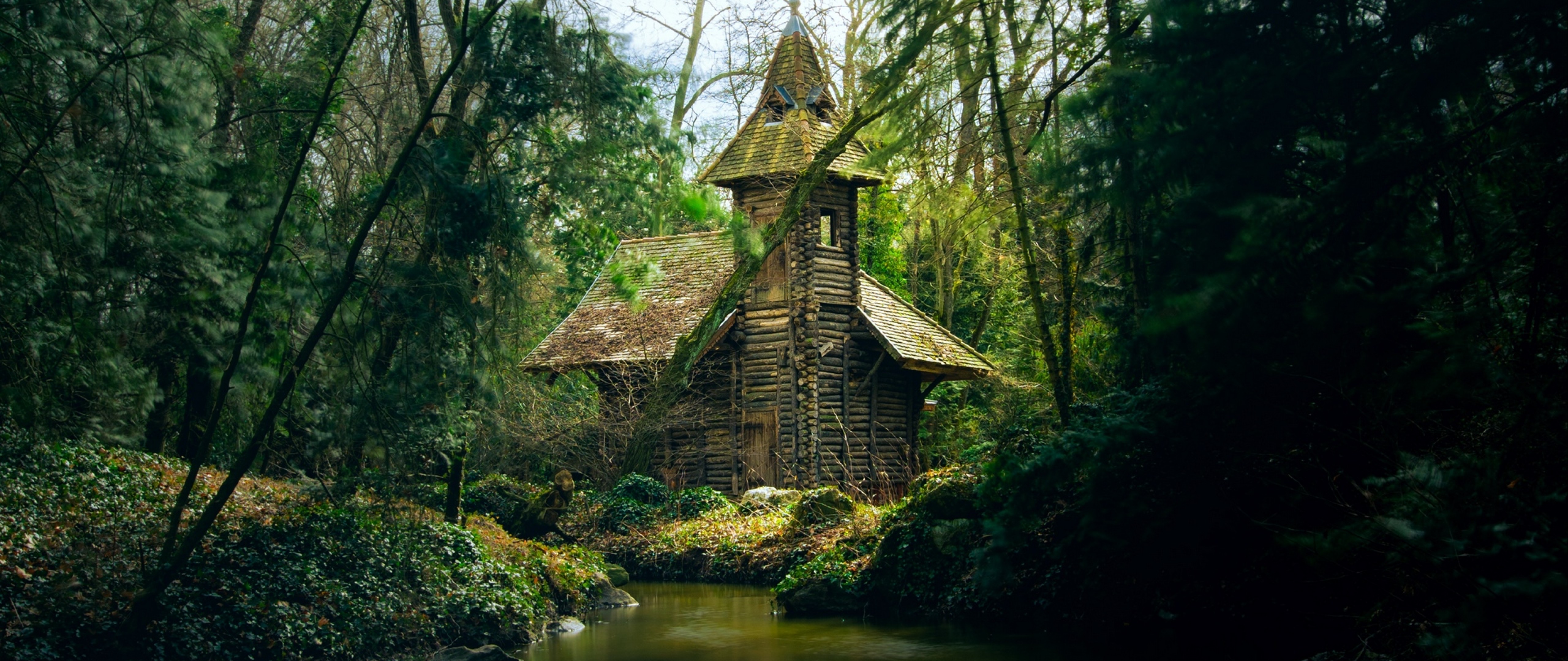 Forest house next to the river HD Wallpaper - 4K Ultra HD Wide TV