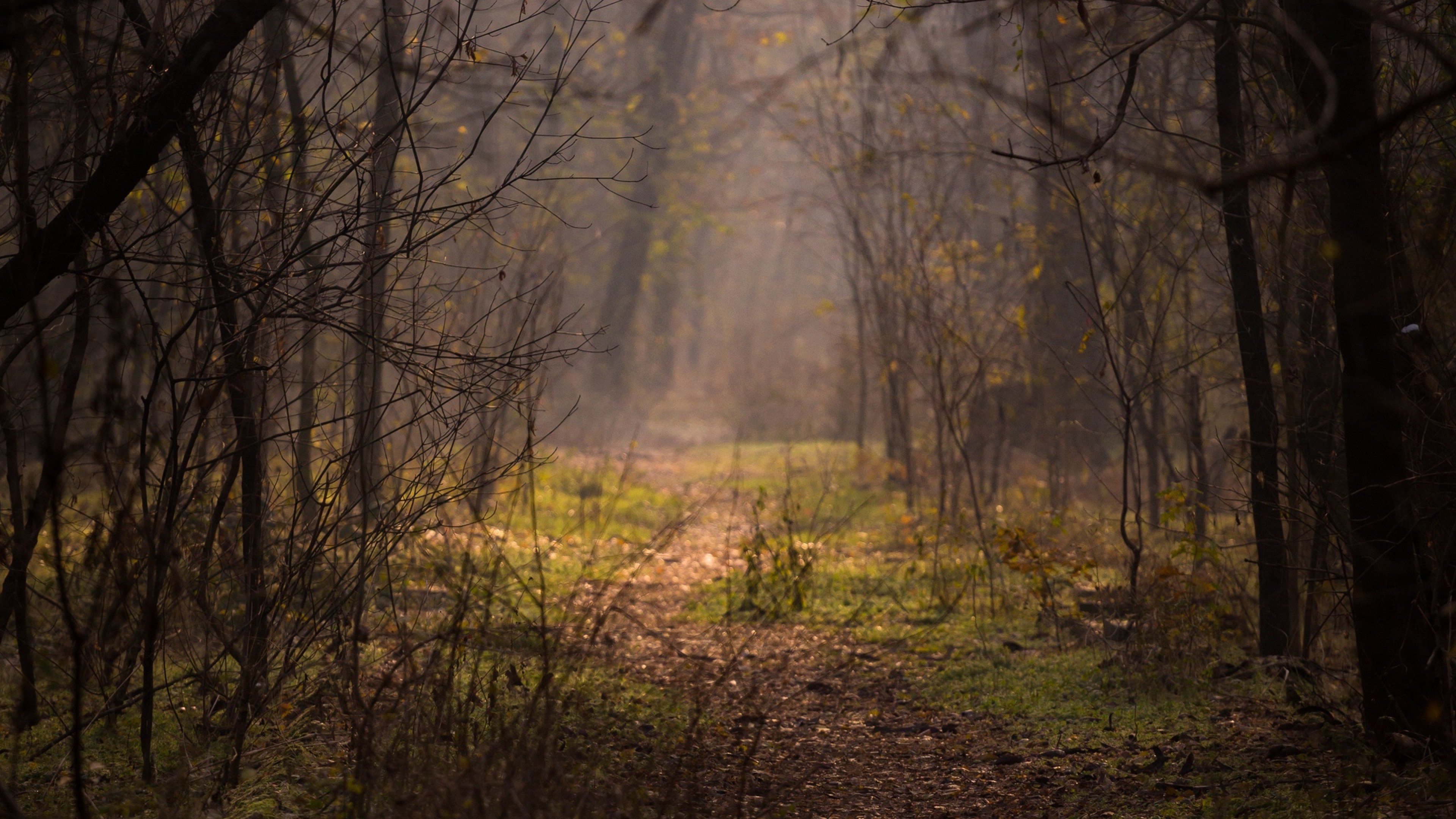 Forest path covered in fog HD Wallpaper - 4K Ultra HD