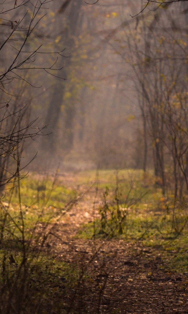 Forest path covered in fog HD Wallpaper - 768x1280