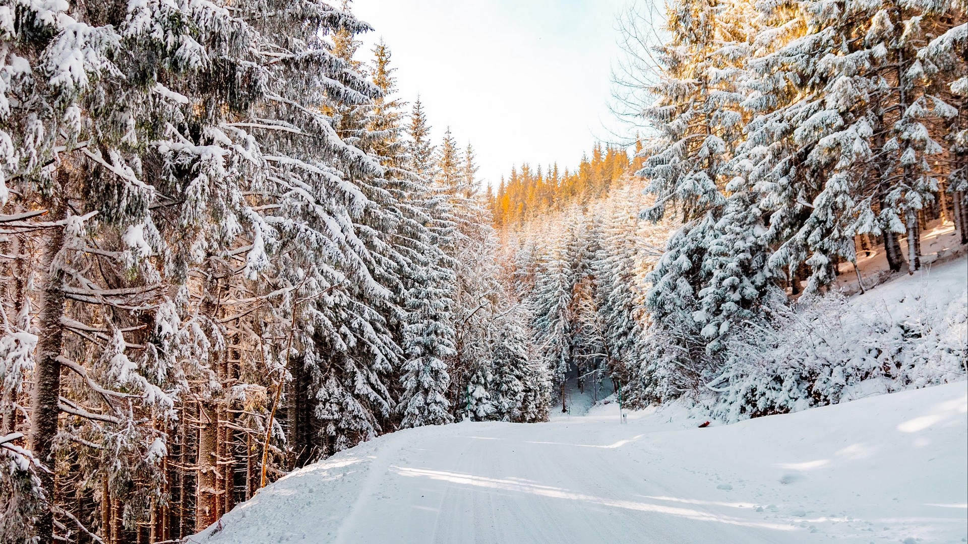 Forest road covered in snow HD Wallpaper - iPhone 7 Plus / iPhone 8 Plus