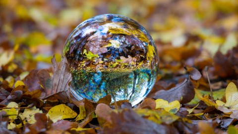 Free Glass Ball on Leaves Wallpaper for Desktop and Mobiles - 480x272 PSP