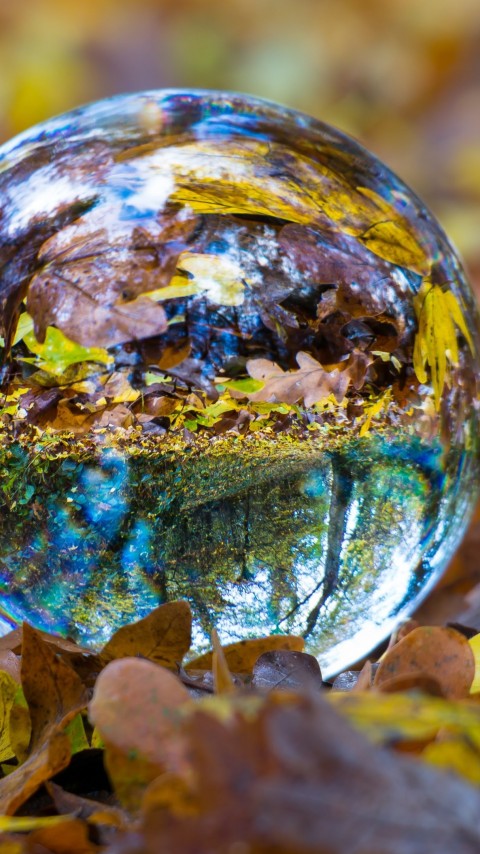 Free Glass Ball on Leaves Wallpaper for Desktop and Mobiles - 480x854