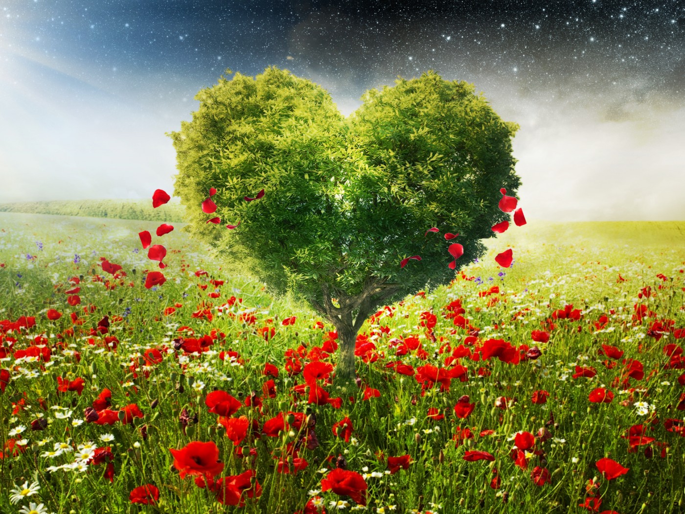 Free Green Heart Tree Poppies Hd Wallpaper for Desktop and Mobiles - 1400x1050