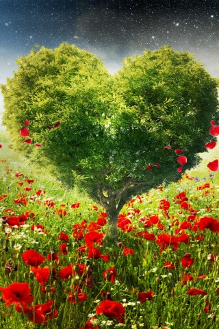 Free Green Heart Tree Poppies Hd Wallpaper for Desktop and Mobiles - Older iPhone & iPod