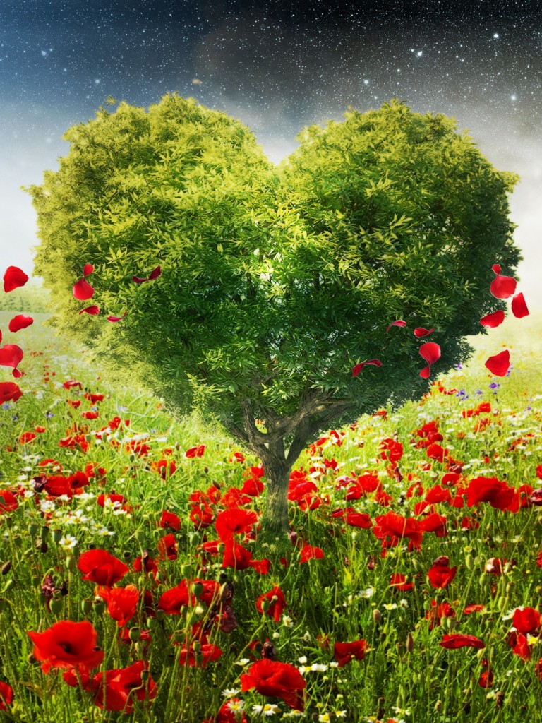 Free Green Heart Tree Poppies Hd Wallpaper for Desktop and Mobiles - Non-retina iPad