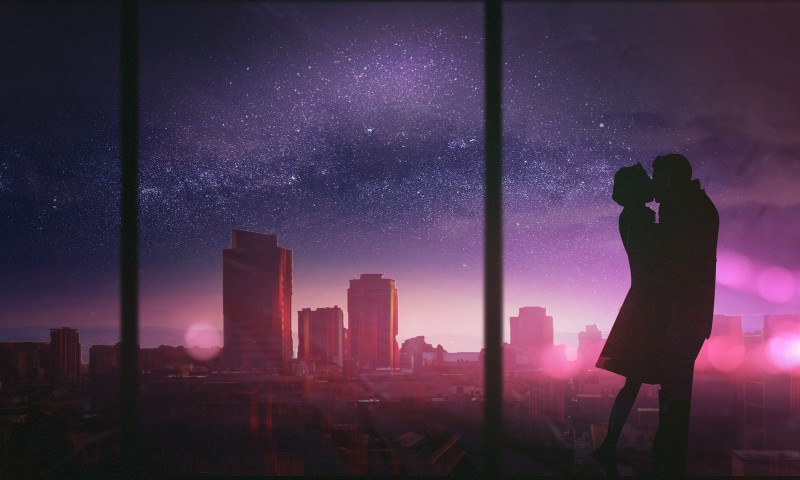 Free Young Couple First Kiss Wallpaper for Desktop and Mobiles - 800x480