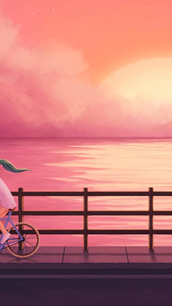 Girl cycling next to the sea HD Wallpaper - 720x1280