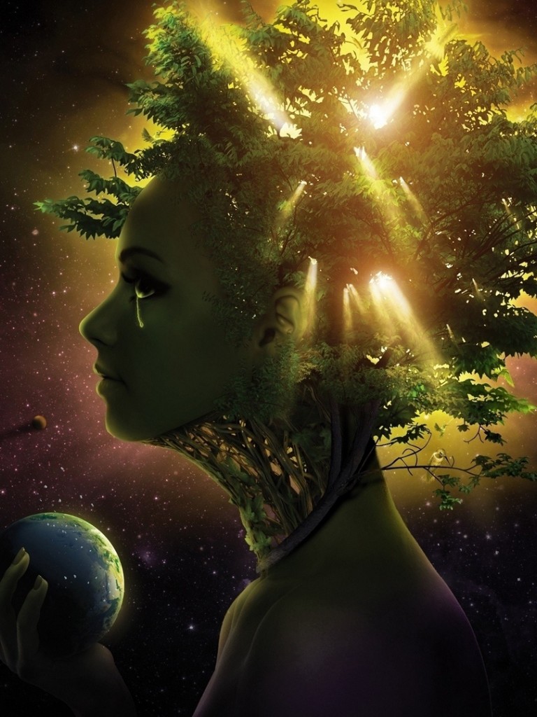 Girl face at space HD Wallpaper - Non-retina iPad