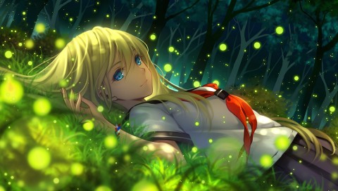 Girl lying on the grass HD Wallpaper - 480x272 PSP