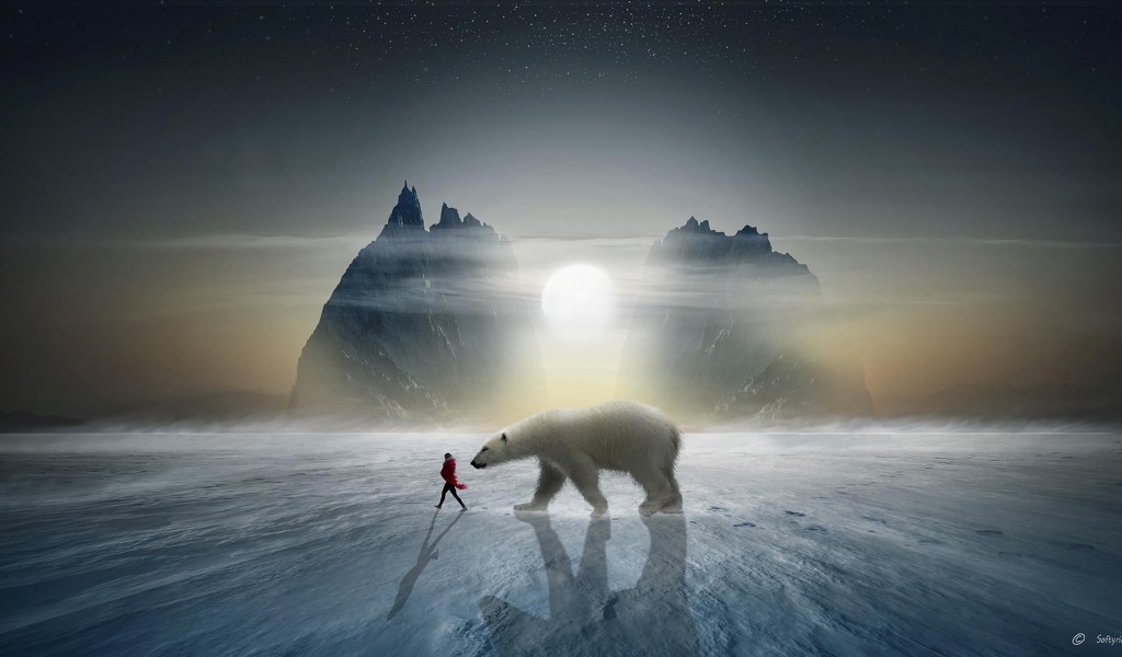 Girl next to a bear HD Wallpaper - 1024x600