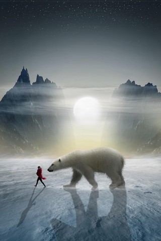 Girl next to a bear HD Wallpaper - Older iPhone & iPod