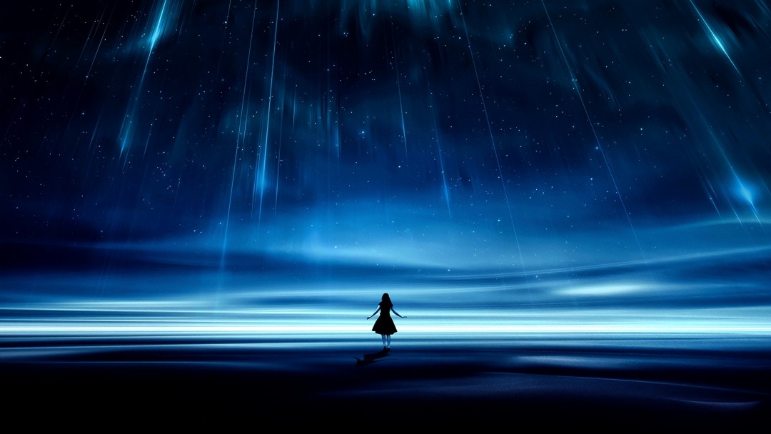 Girl silhouette under a starry sky HD Wallpaper - Google Plus Cover Photo