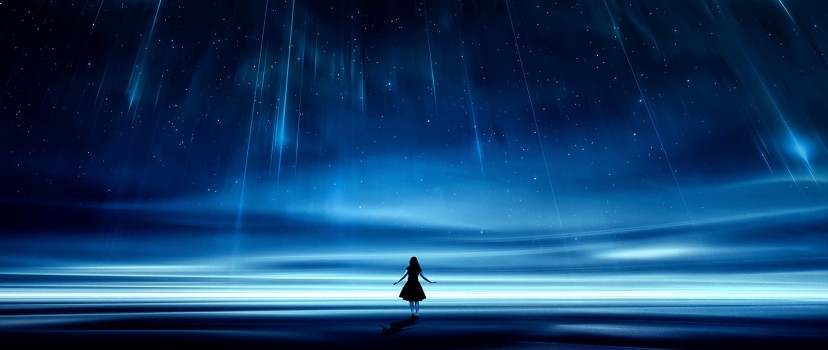 Girl silhouette under a starry sky HD Wallpaper - Facebook Cover Photo