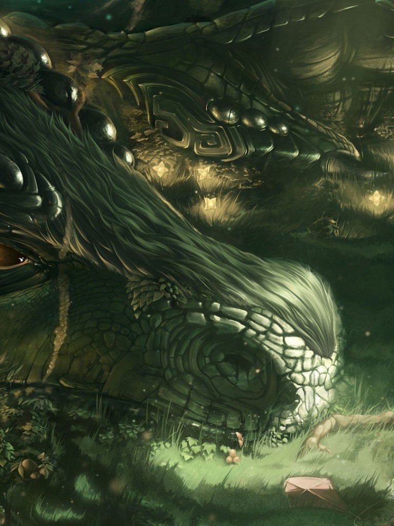 Girl watching a dragon HD Wallpaper - Non-retina iPad