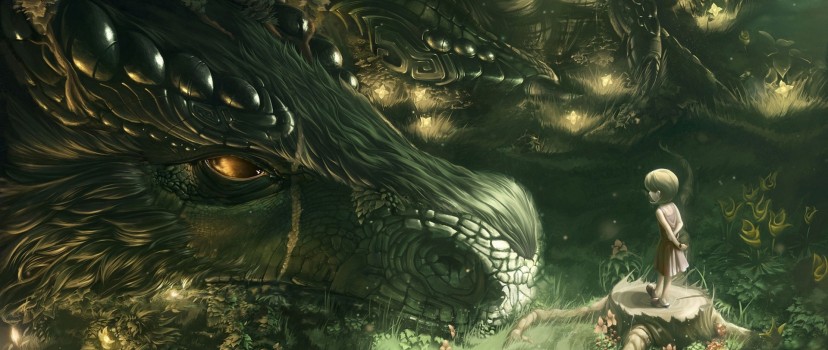 Girl watching a dragon HD Wallpaper - Facebook Cover Photo